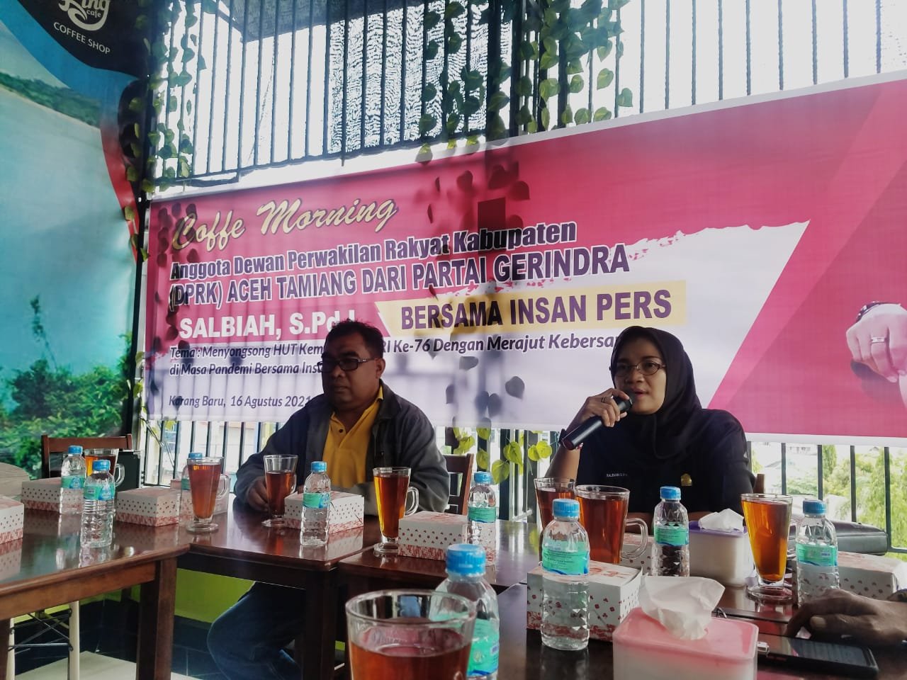 MATTANEWS.CO, ACEH TAMIANG– Merajut kebersamaan menyongsong Hari Ulang Tahun (HUT) kemerdekaan Republik Indonesia (RI) ke 76, Anggota Dewan Perwakilan Rakyat Kabupaten (DPRK) Aceh Tamiang, Salbiah diskusi dengan insan pers setempat, Senin (16/8/21).