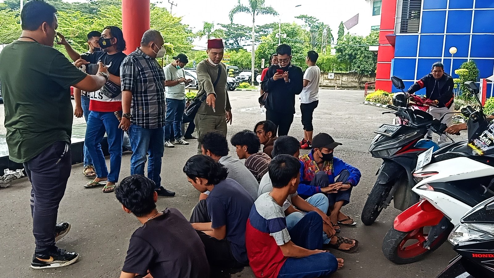 MATTANEWS.CO, PALEMBANG – Kembali kawanan gank motor meresahkan warga diamankan petugas Tim Beguyur Bae Satreskrim Polrestabes Palembang pimpinan Iptu Joni Palapa, Kamis (10/2/2022). Sedikitnya Delapan pelaku digelandang karena membacok korban Lilis (22) saat melintas di Jalan Jendral Sudirman depan Pasar Cinde Palembang, Minggu (6/2/2022) pukul 03.00 WIB.