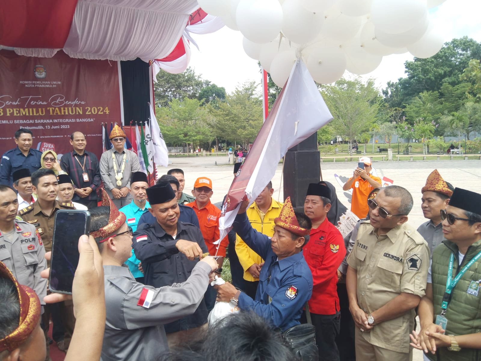 MATTANEWS.CO, PRABUMULIH – Komisi Pemilihan Umum (KPU) Kota Prabumulih gelar serah terima Kirab Pemilu 2024, kegiatan yang dipusatkan di Taman Prabujaya (PJ) Kota Prabumulih, Selasa (13/6/2023).