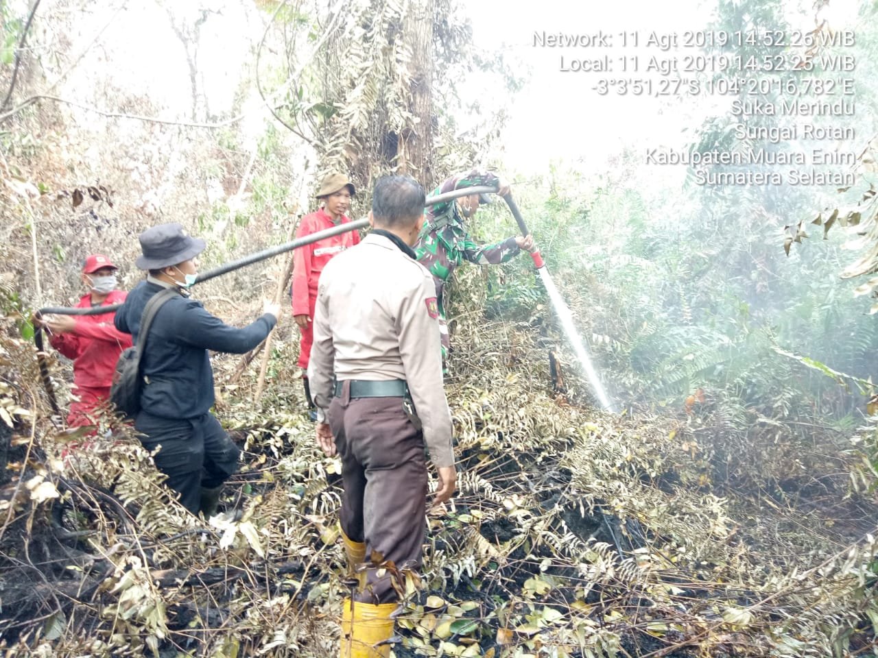 PALEMBANG, Mattanews.co – Seakan tak mengenal lelah, Satuan Tugas Gabungan (Satgasgab) Kebakaran Hutan dan Lahan (Karhutla) terus menerus bahu membahu berjibaku memadamkan api yang membakar lahan di sejumlah daerah di wilayah Sumatera Selatan (Sumsel), Minggu (11/08/2019).