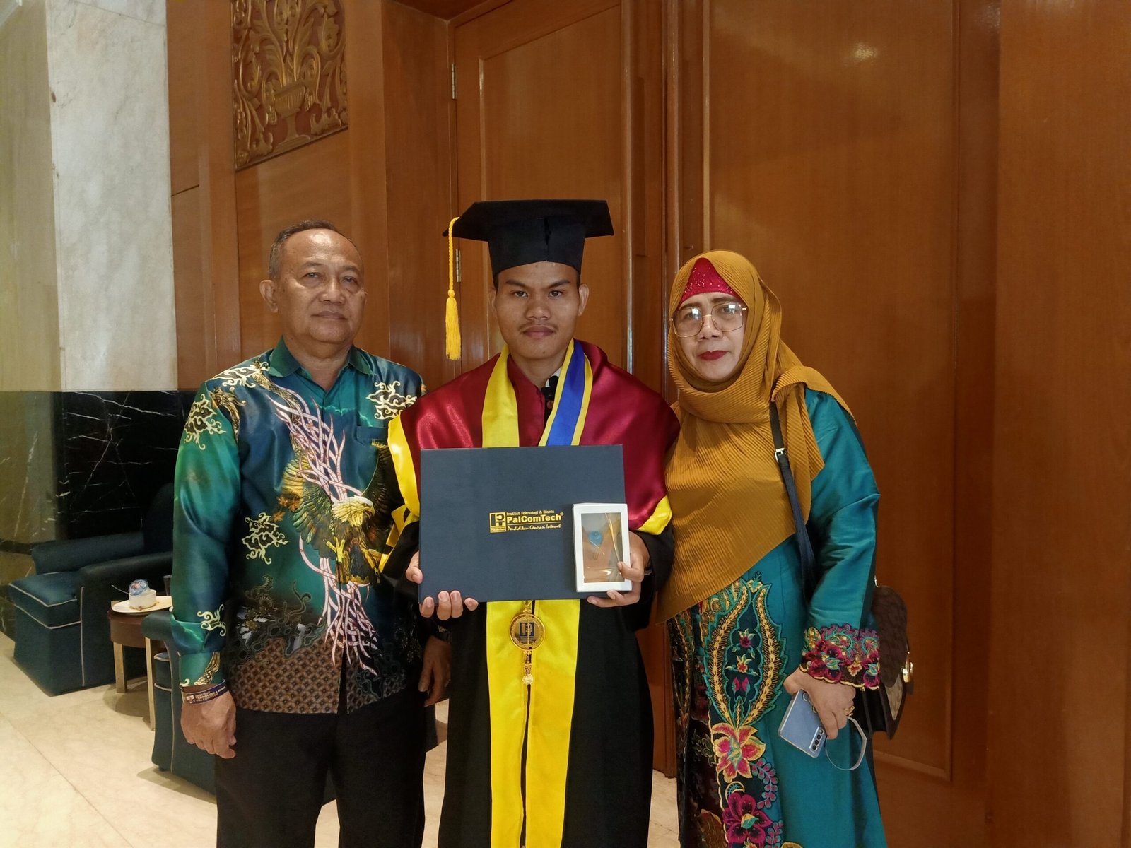 Budimin yang telah melewati pendidikan selama tiga dalam Jurusan Sistem Informasi itu, akhirnya wisuda dan dihadiri orang tua asuhnya, di Hotel Aryaduta Palembang.