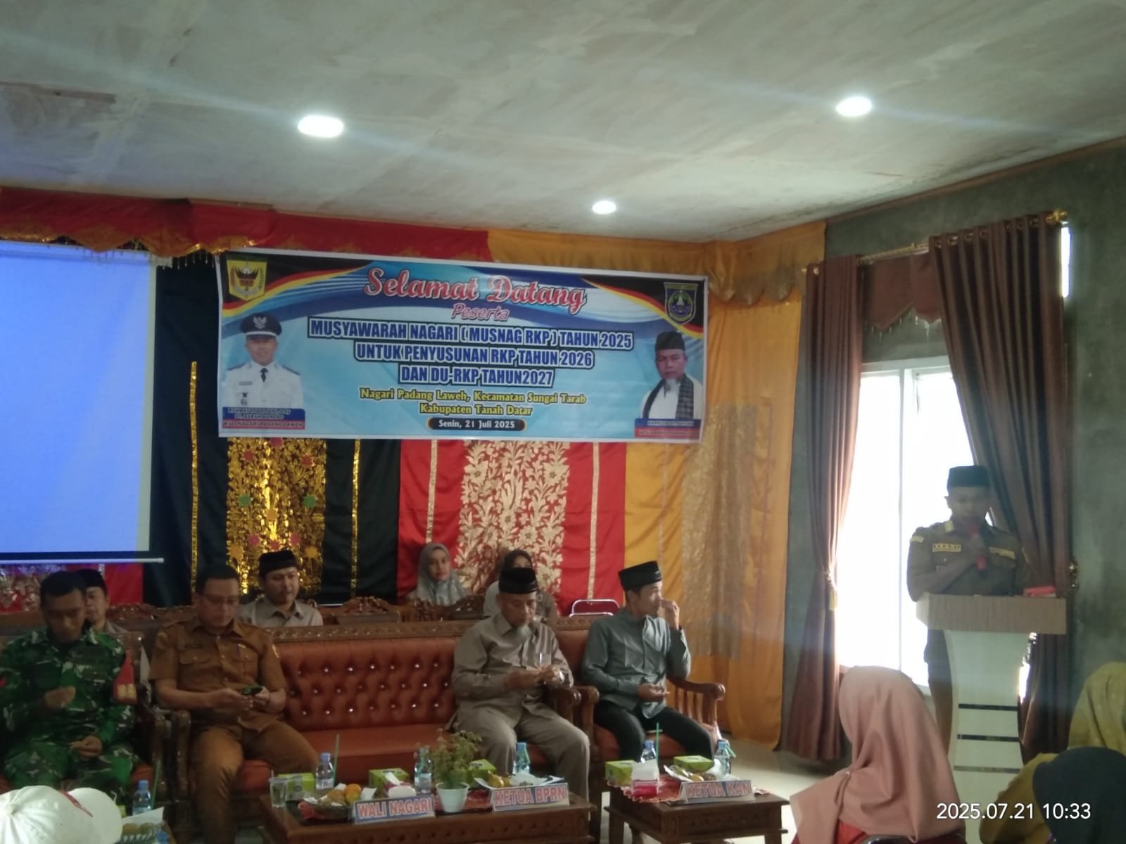 Hal ini, disampaikan oleh Wali Nagari Padang Laweh, saat menggelar Musyawarah Nagari(Musnag) Rencana Kerja Pemerintahan(RKP) Tahun 2025, dan Daftar Usulan, Rencana Kerja Pemerintahan(DURKP) Tahun 2027, yang diadakan di Aula Kantor Wali Nagari setempat, Senin(21/7/2025).