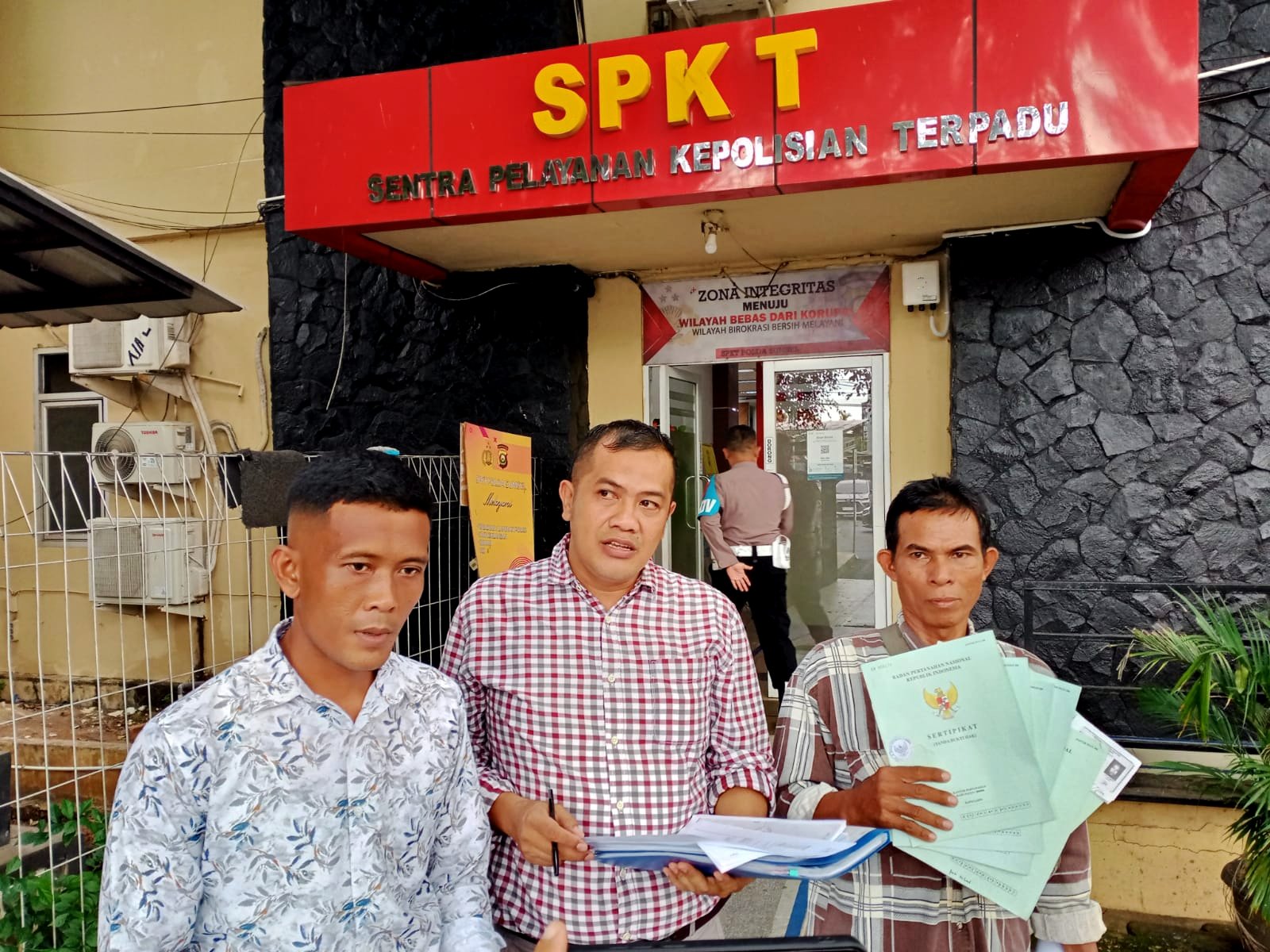 MATTANEWS.CO, PALEMBANG – Okeng (54) didampingi Penasehat Hukum (PH) nya, Novel Suwa melaporkan RH, SG, SRF, DG ke Mapolda Sumsel, karena diduga melakukan penyerobotan lahan, pemalsuan surat tanah, memberikan keterangan palsu ke dalam akta autentik, merusak lahan secara bersama-sama di Parit 11, Air Solok Batu, Desa Air Saleh, Kabupaten Banyuasin, Sumsel, Senin (4/8/2025).