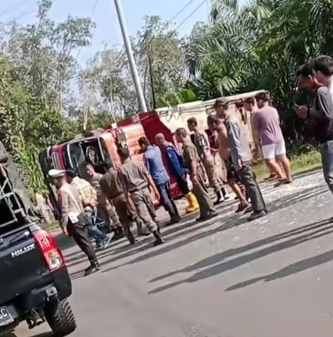 Menurut informasi yang dihimpun di lapangan, mobil Damkar tersebut membawa empat orang petugas yang tengah dalam perjalanan menanggapi laporan kebakaran yang terjadi di Desa Rantau Serik. Namun nahas, dalam kecepatan tinggi untuk mengejar waktu, mobil kehilangan kendali hingga akhirnya terbalik di ruas jalan yang dikenal cukup padat dan rawan kecelakaan.