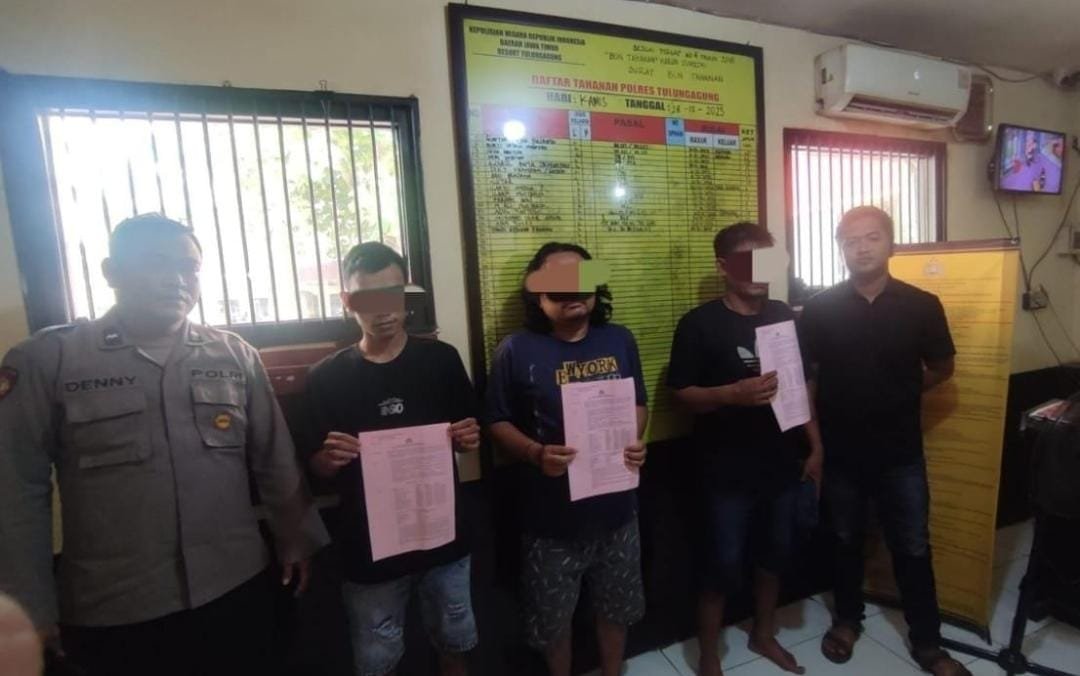 Menurut Kasi Humas IPTU Mujiatno, ketiga terduga pelaku berhasil dibekuk oleh Timsus Macan Agung Satreskrim Polres Tulungagung, Polda Jawa Timur.