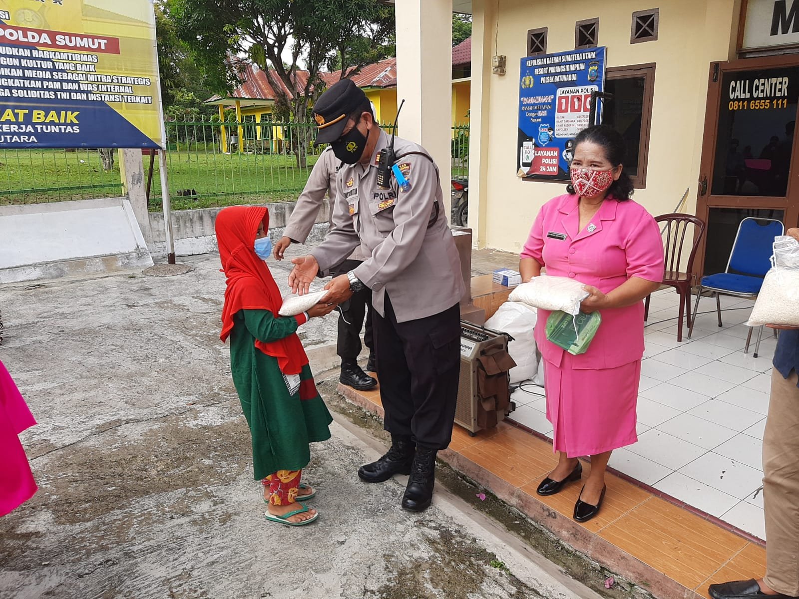 “Kami mohon kepada Bapak/Ibu/adik-adik yang hadir di sini, agar jangan melihat apa yang kami berikan dari nilainya. Tapi, lihat lah keikhlasan kami dalam berbagi kasih kepada masyarakat sekalian,” ungkap Kapolsek yang didampingi Ketua Ranting Bhayangkari Polsek Batunadua, Ny Damaris M Butarbutar.
