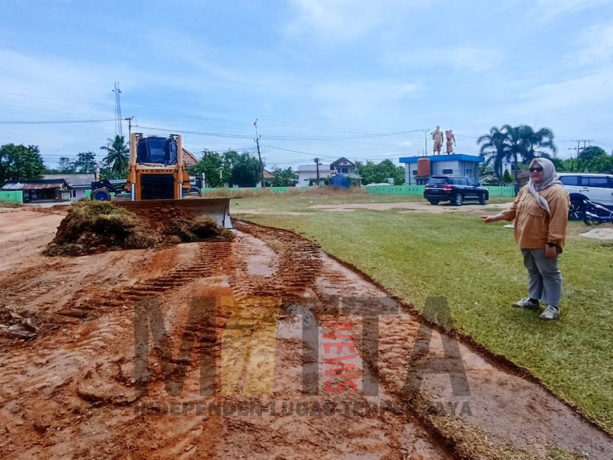 Mengleder lapangan (Red. meratakan tanah) untuk mempermudah warga masyarakat Kelurahan Tanjung Raman untuk beraktivitas.