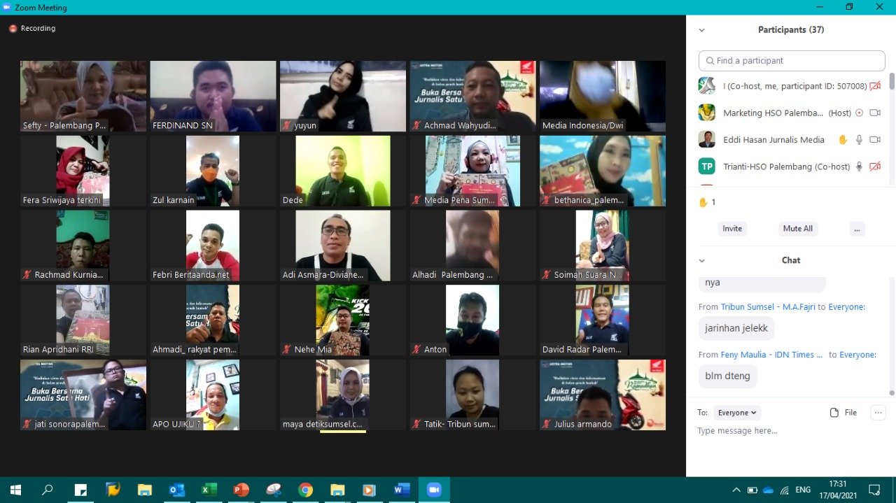 MATTANEWS.CO, PALEMBANG – upaya menjaga hubungan baik serta menjalin keakraban dengan awak media, Astra Motor Sumsel selaku main dealer sepeda motor Honda di wilayah Sumatra Selatan mengadakan acara journalist gathering buka puasa bersama secara virtual. Kegiatan ini tidak bisa dilakukan secara tatap muka, dikarenakan masih dalam suasana pandemi Covid-19.