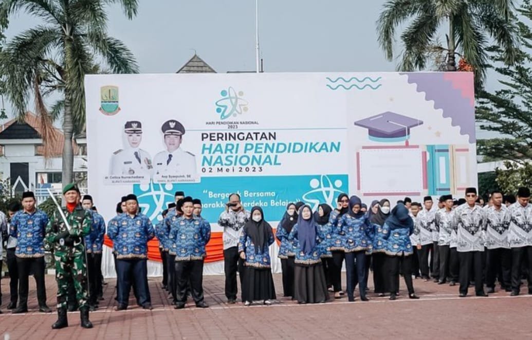 Wabup Aep membacakan amanat Mendikbudristek RI, Nadiem Anwar Makarim dalam upacara peringatan Hardiknas 2023.Dari sebanyak 24 episode merdeka belajar yang sudah diluncurkan, telah membawa pemerintah semakin dekat dengan cita-cita Ki Hajar Dewantara.