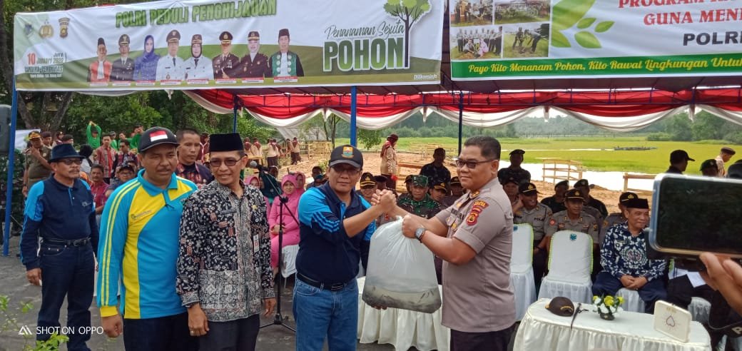Batanghari, Mattanews.co – Kepala Sekolah Menengah Kejuruan (SMK) Pertanian Pembangunan (SMK-PP) Jambi Jon Kuswanto, turut serta menyumbangkan bibit pohon dan bibit ikan lele dari para muridnya kepada Kapolres Batanghari.