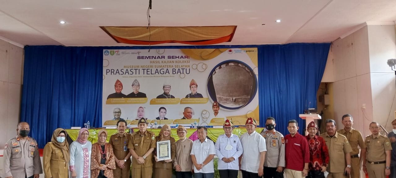 MATTANEWS.CO, PALEMBANG – Dalam rangka mengenal dan melestarikan peninggalan sejarah berupa prasasti yang ada di Sumatera Selatan, Dinas Kebudayaan dan Pariwisata Provinsi Sumsel melalui UPTD Museum Negeri Sumatera Selatan menggelar kegiatan seminar sehari hasil kajian koleksi museum negeri Sumatera Selatan terhadap Prasasti Telaga Batu.