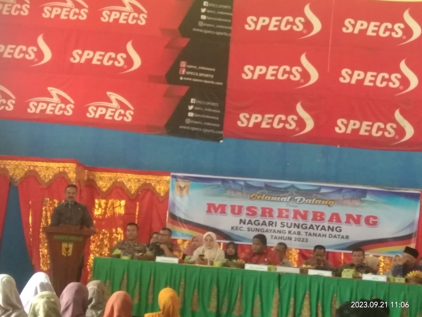 Musrenbang Nagari Sungayang tampak hadir salah satu anggota DPRD, Tanah Datar, Khairul Abdi, Camat Sungayang Narty, OPD, kepala Upt, tokoh Masyarakat, dan undangan lainya.