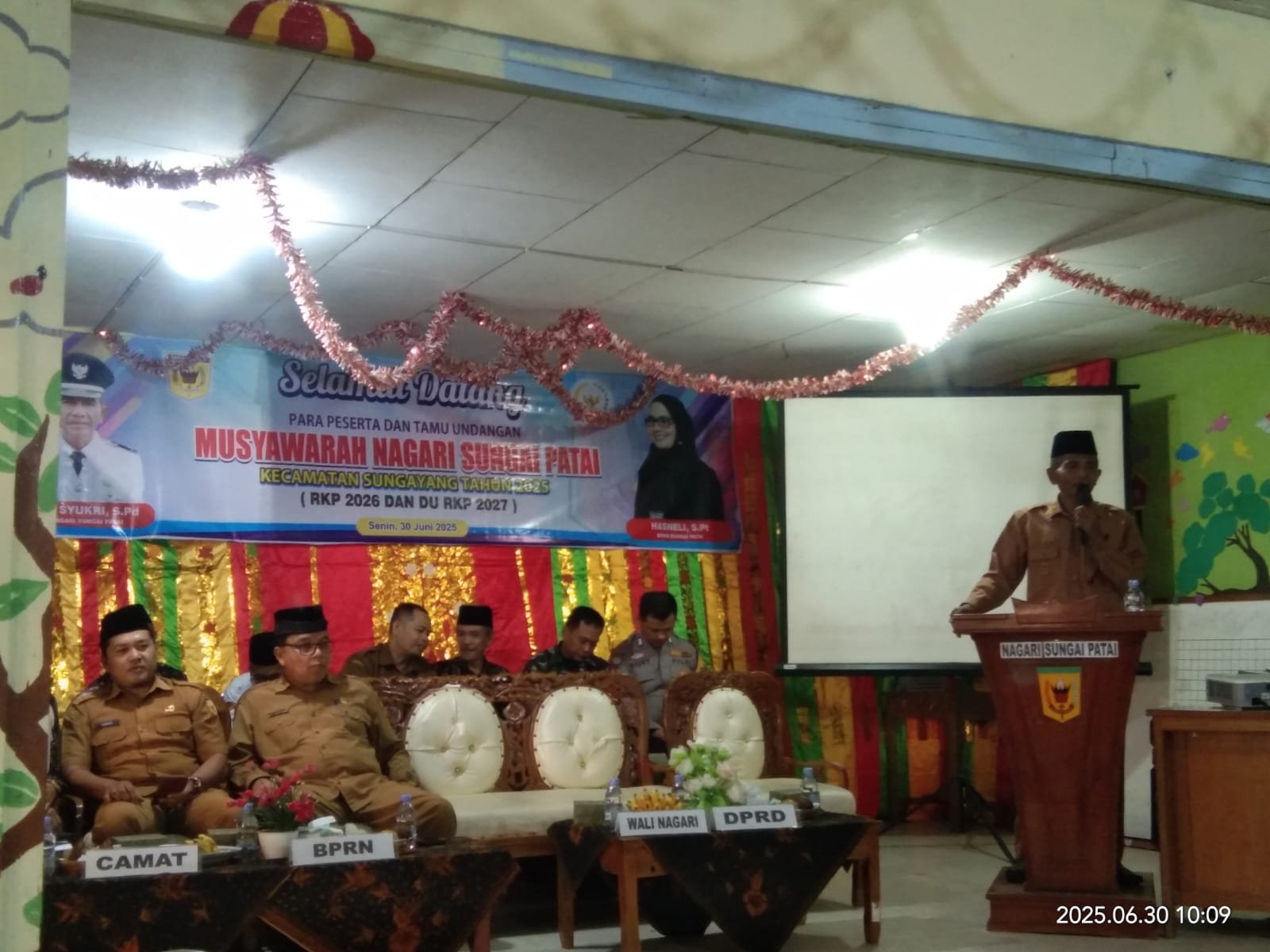 Hal ini, disampaikan saat menggelar Musyawarah Nagari(Musnag) penyusunan RKP untuk Tahun 2026, yang diadakan di gedung Sekolah Dasar,(SD.01) Nagari Sungai Patai, kecamatan Sungayang, Senin(30/6/2025).