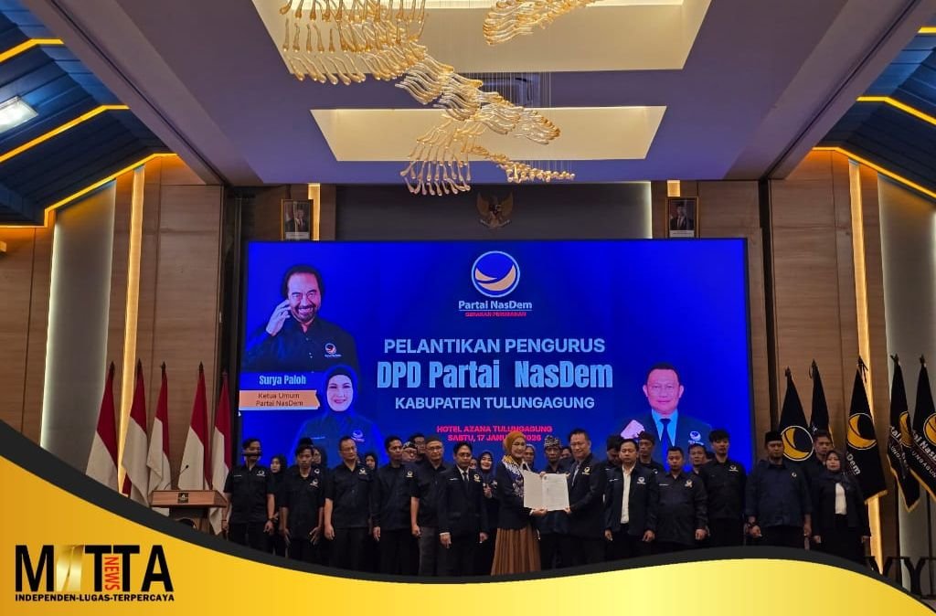 MATTANEWS.CO,TULUNGAGUNG – Partai Nasional Demokrat (NasDem) Kabupaten Tulungagung resmi menyalakan mesin politik menuju Pemilu mendatang. Hal itu ditegaskan Ketua DPD Partai NasDem Tulungagung, Panhis Yody Wirawan, S.H., M.Kn., saat memberikan sambutan dalam Pelantikan Pengurus DPD dan DPC serta Rapat Kerja Daerah (Rakerda) I Partai NasDem Tulungagung, yang digelar di Ballroom Lantai 2 Hotel Azana, Sabtu (17/1/2026).