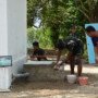 Terlihat beberapa anggota Satgas TMMD bersama warga duduk santai sambil bercengkrama memadangi Pos Kamling yang sudah selesai dibangun.