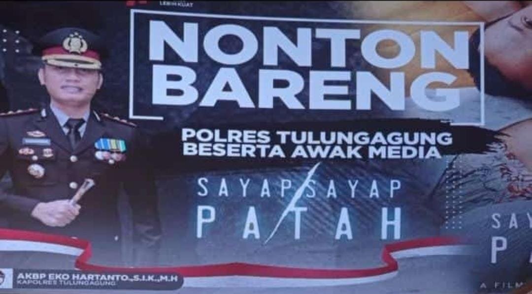 Polres Tulungagung bersama awak media nonton bareng film Sayap Sayap Patah, Minggu (28/8) Foto: Istimewa/mattanews.co