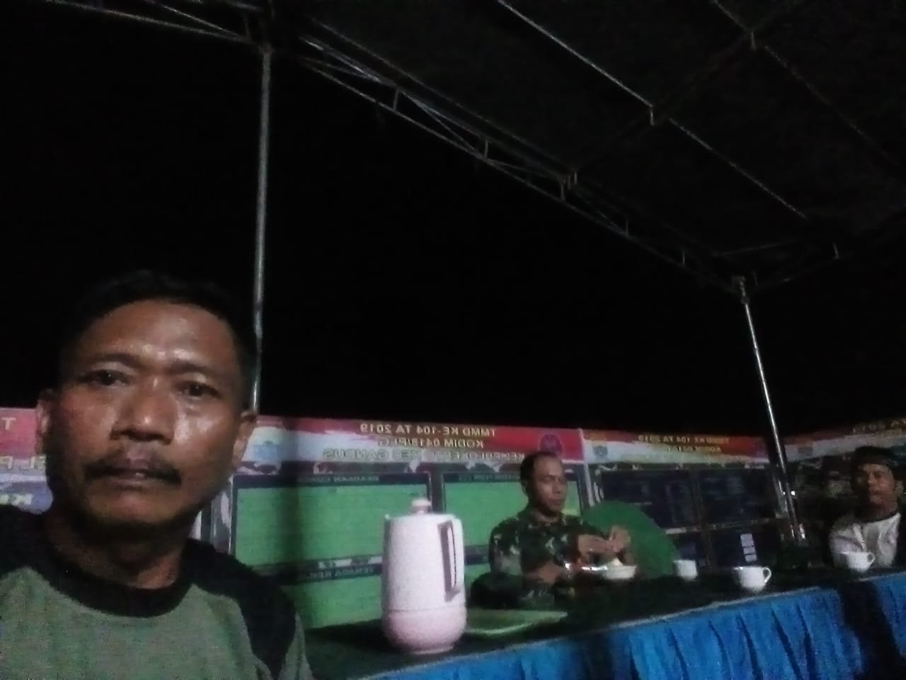 Nobar bersama warga Kampung Pulokerto ini ditunda karena tenda yang akan digunakan sebagai lokasi nobar ambruk dihantam angin saat hujan yang terjadi, Kamis malam (19/03/2019).
