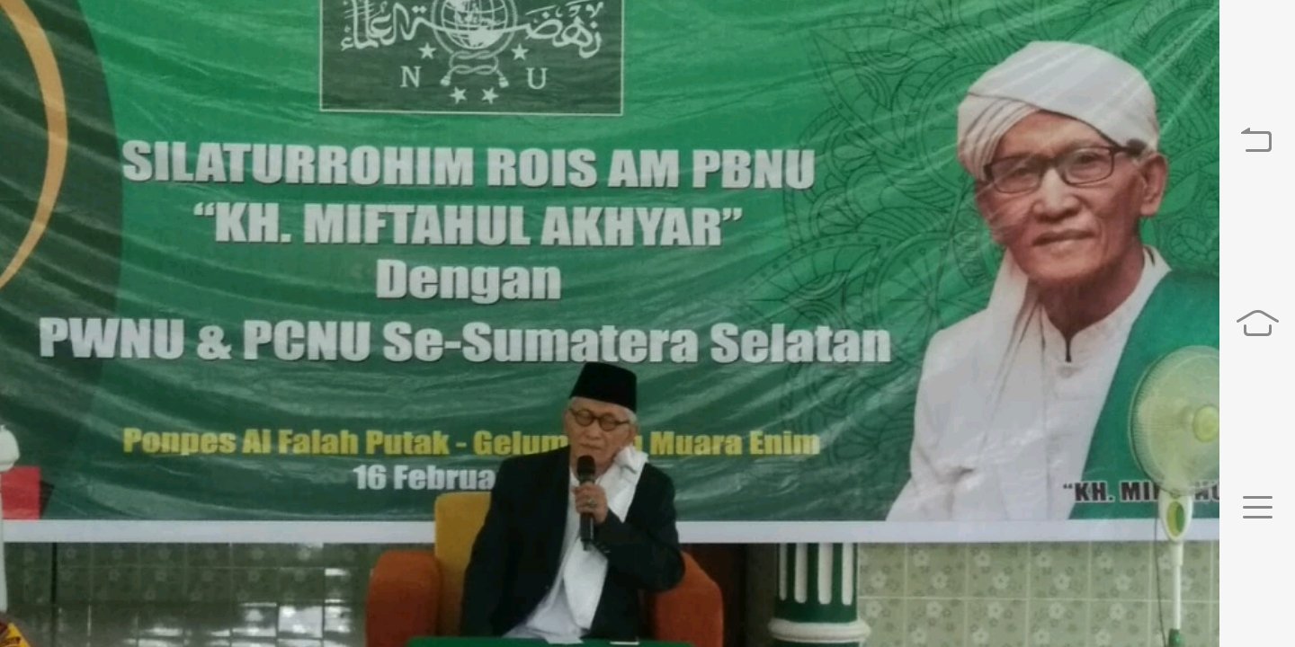 Komitmen itu disampaikan melalui deklarasi bersama saat acara Silahturahmi Rois Am PBNU KH. MIFTAHUL AKHYAR dengan PWNU dan PCNU Se – Sumatera Selatan di Pondok Pesantren Al Falah Putak Gelumbang, Muara Enim, Sabtu (16/2) siang.