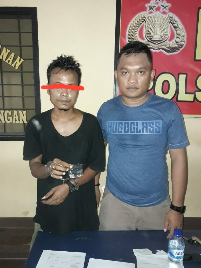 Dari penangkapan tersebut petugas berhasil mengamankan barang bukti berupa 1 lembar plastik klip transparan berukuran kecil diduga berisikan Sabu dan 1 Unit Handphone milik pelaku.
