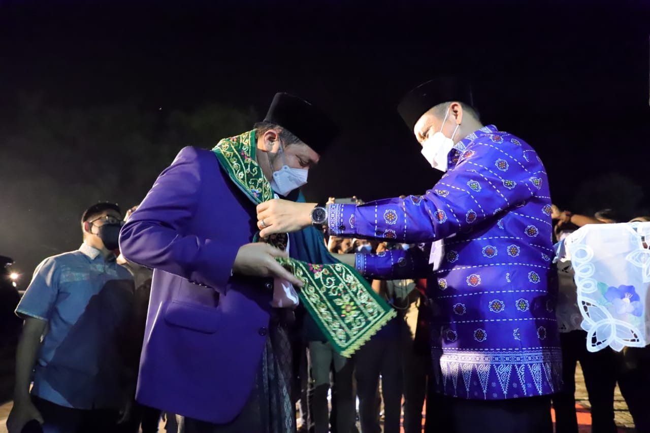 MATTANEWS.CO, OKU TIMUR – Pembukaan Seleksi Tilawatil Quran dan Hadits (STQH) di Taman Tani Merdeka Martapura Kabupaten OKU Timur, Jumat Malam (21/05/2021) Sukses Digelar. Pembukaan STQH ditandai dengan pemukulan beduk oleh Gubernur Sumatera Selatan H. Herman Deru yang didamping langsung oleh Bupati OKU Timur H. Lansoin, S.T. dan Wakil Bupati OKU Timur H.M. Adi Nugraha Purna Yudha, S.H. serta Sekda Provinsi serta Seluruh Kepala Daerah Kabupaten/Kota Se-Sumatera Selatan atau yang mewakili.