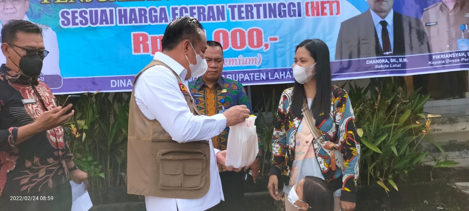 MATTANEWS.CO, LAHAT – Bertempat di Kantor dinas perdagangan dan Perindustrian Kabupaten Lahat hari ini Kamis (24/02/2022) Bupati Lahat Cik Ujang,SH di dampingi Sekretaris Daerah (Sekda) Lahat Chadra SH MM Pantau langsung operasi pasar penjualan minyak goreng kemasan Premium ukuran satu ke liter.