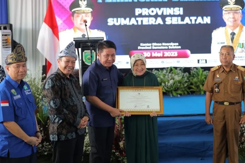 Pada kesempatan itu, Gubernur Herman Deru memberikan Piagam Penghargaan kepada Keluarga Abdul Aziz Bupati OKU periode 1952-1954, BPBD Sumsel atas kesediaannya memberikan arsip bersejarah (Statis) tentan Corona 2019-2921dan Arsip Daerah penanggulangan kebakaran tahun 2015