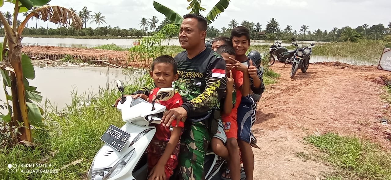 MATTANEWS.CO,PALEMBANG – Personil Satgas TMMD ke 110 Kodim 0418 Palembang, mengajak anak-anak Kampung Sungai Jawi berkeliling menggunakan sepeda motor.