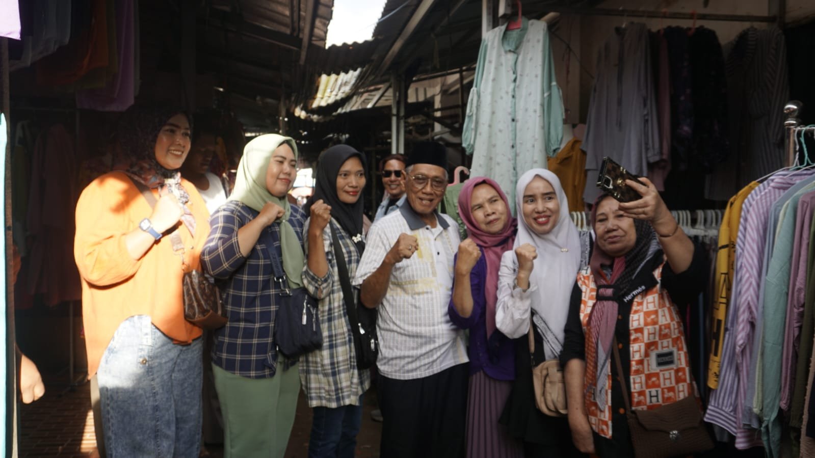 MATTANEWS.CO, BANYUASIN – Bakal calon Bupati Banyuasin Slamet Somosentono di serbu emak-emak untuk berfoto selfie saat bakal calon orang nomor satu di Kabupaten Banyuasin itu melakukan blusukan ke Pasar Megah Asri Sukajadi, Talang Kelapa, Minggu (26/05) pagi.