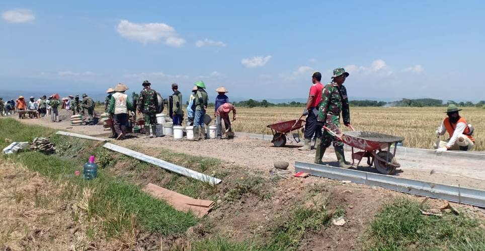 “Teriknya panas matahari yang membakar tubuh tak jadi halangan dan rintangan, Serda Rosi Babinsa,pengecoran jalan yang merupakan sasaran fisik mulai dikerjakan dikarenakan target alokasi waktu yang harus benar benar diperhitungkan,”ungkapnya”.