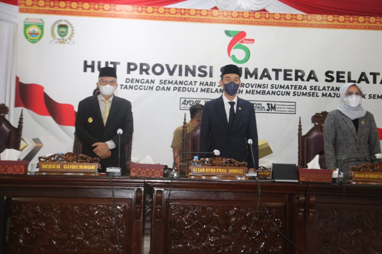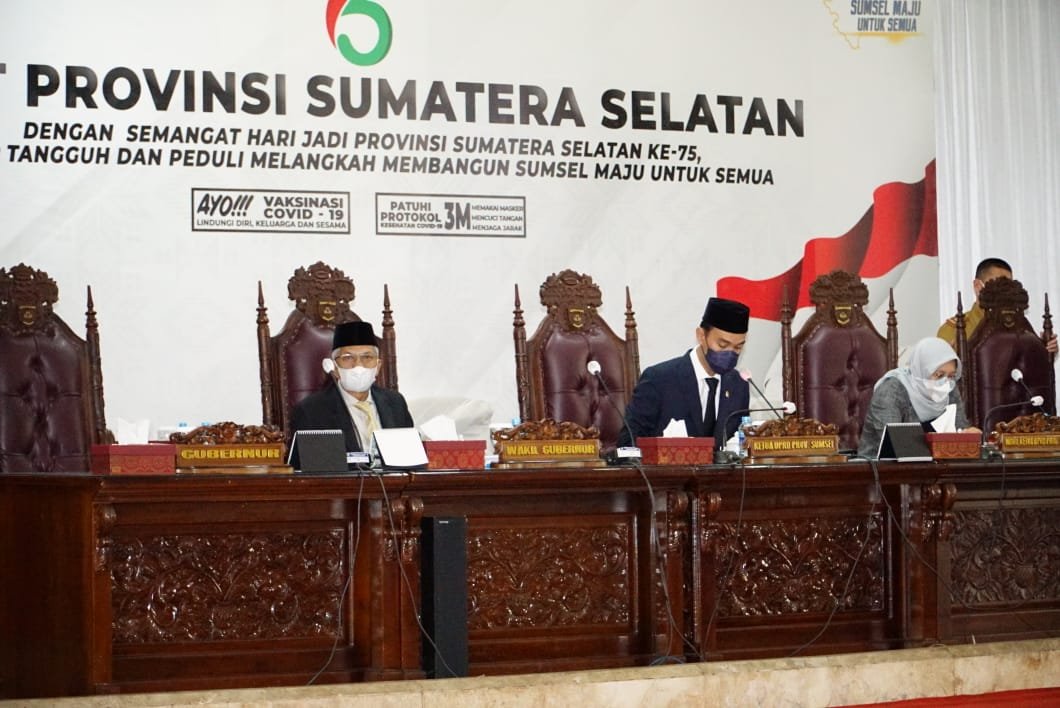MATTANEWS.CO, PALEMBANG – Wakil Gubernur Sumatera Selatan (Sumsel) Ir. H Mawardi Yahya menghadiri Rapat Paripurna XXX (30) DPRD Provinsi Sumsel dengan agenda Pemandangan Umum Fraksi-fraksi DPRD Provinsi Sumsel atas Penjelasan Gubernur Sumsel terhadap sembilan (9) Raperda Provinsi Sumsel bertempat di Ruang Rapat Paripurna DPRD Sumsel, Senin (17/05/2021)