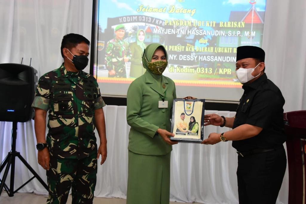 MATTANEWS.CO, BANGKINANG – Pangdam I/BB Mayjen TNI Hassanudin SIP MM bersama Ketua Persit Kartika Chandra Kirana Daerah I/BB Ny Dessy Hassanudin beserta rombongan, didampingi Danrem 031/WB Brigjen TNI M Syech Ismed, SE, MHan beserta melaksanakan kunjungan kerja ke Markas Kodim 0313/Kampar Jalan Jenderal Sudirman Bangkinang, Jumat (26/11/2021).