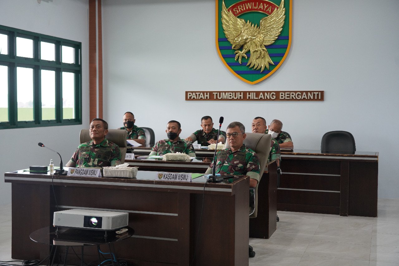 Rapat koordinasi diikuti Pangdam II/Swj, Mayjen TNI Agus Suhardi didampingi Kasdam II/Swj, Brigjen TNI Gumuruh Winardjatmiko, S.E., M.B.A. dan sejumlah pejabat utama Kodam II/Swj, antara lain Kapok Sahli Pangdam II/Swj, Aster Kasdam II/Swj, Kakudam II/Swj, Pabandya Ster dan Pakudam II/Swj, bertempat di Ruang Rapat Pangdam Gedung C Lantai – 4 Makodam II/Swj Palembang.