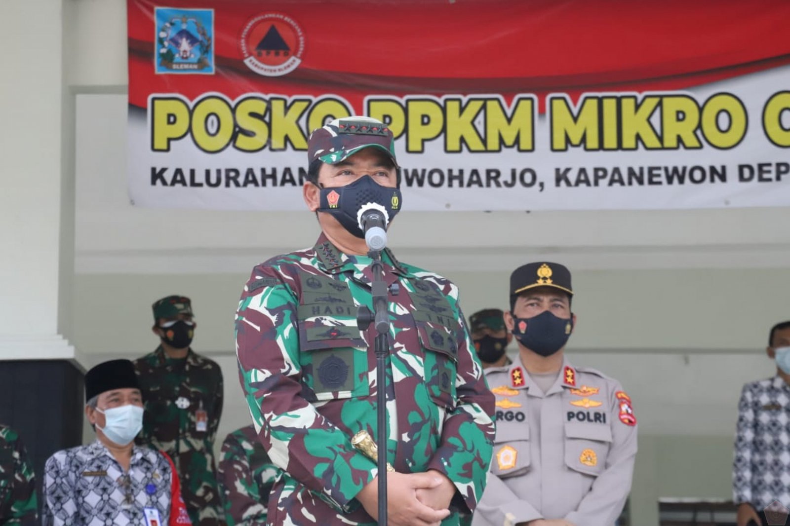 MATTANEWS.CO, JAKARTA– Panglima TNI Marsekal TNI Hadi Tjahjanto, S.I.P., dan Kapolri Jenderal Polisi Drs. Listyo Sigit Prabowo, M.Si. meninjau secara langsung pelaksanaan protokol kesehatan selama diberlakukanya Pembatasan Pemberlakuan Kegiatan Masyarakat (PPKM) skala Mikro yang berada di Kelurahan Maguwoharjo, Kabupaten Sleman, Provinsi Daerah Istimewa Yogyakarta (DIY), Jumat (19/2/2021).