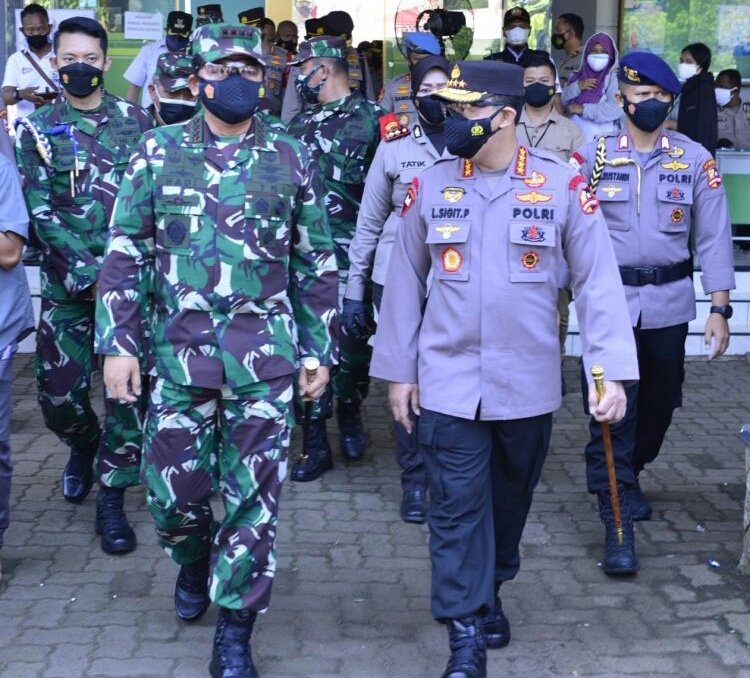 MATTANEWS.CO, JAKARTA TIMUR– Panglima TNI Marsekal Hadi Tjahjanto dan Kapolri Jenderal Polisi Listyo Sigit Prabowo mengunjungi dua lokasi kegiatan vaksinasi massal di Jakarta, Minggu (4/7/2021).