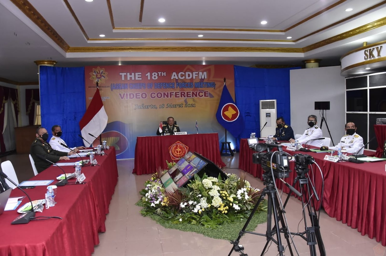 Hal tersebut disampaikan oleh Panglima TNI Marsekal TNI Hadi Tjahjanto, S.I.P., yang dibacakan oleh Kepala Staf Umum (Kasum) TNI Letjen TNI Ganip Warsito, S.E., M.M., dalam pertemuan secara virtual Panglima Angkatan Bersenjata Wilayah ASEAN pada Forum ke-18 ASEAN Chiefs of Defense Forces Meeting (ACDFM) tahun 2021 yang diikuti oleh Vietnam, Brunei Darussalam, Kamboja, Indonesia, Laos, Malaysia, Myanmar, Philipina, Singapura dan Thailand, bertempat di Klub Eksekutif Persada, Lanud Halim Perdanakusuma, Jakarta, Kamis (18/03/2021).