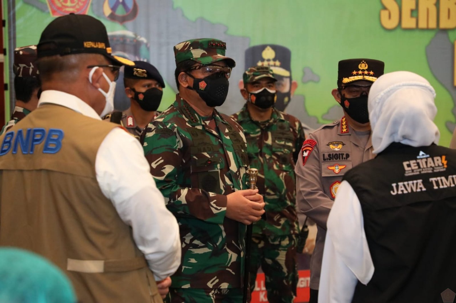 Panglima TNI mengatakan, supaya tidak terjadi penumpukan bagi masyarakat yang akan divaksin silahkan mendatangi rumah sakit tingkat Korem, Polres atau instansi TNI lainnya yang menyelenggrakan vaksinasi. “Terima kasih kepada Gubernur Jawa Timur atas pelaksanaan vaksinasi pagi hari ini yang diikuti kurang lebih 5.000 penerima vaksin,” ucapnya.