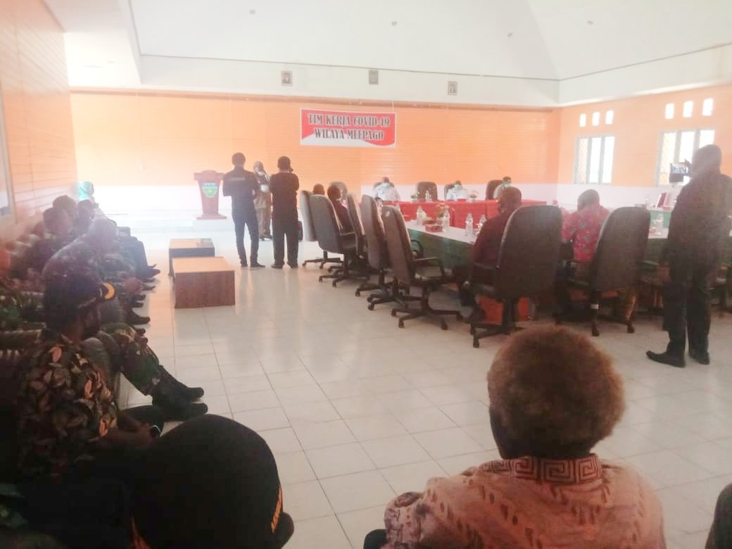 Peserta rakor yang digelar pada hari Rabu (6/5/2020) di gedung aula DPRD Kabupaten Deiyai ini, diberi nama Tim Kerja Covid-19 di Wilayah Meepago.