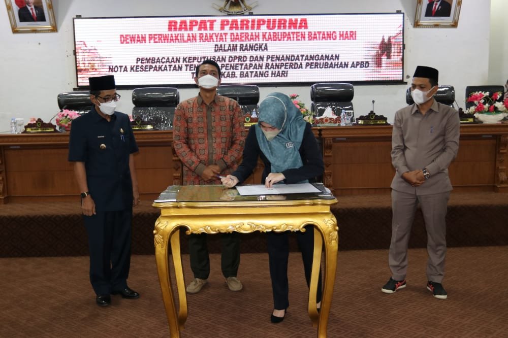 MATTANEWS.CO, BATANGHARI – Laksanakan Paripurna, Dewan Perwakilan Rakyat Daerah (DPRD) Kabupaten Batanghari bacakan keputusan serta penandatanganan kesepakatan tentang penetapan Rancangan Peraturan Daerah (Ranperda) Perubahan Anggaran Pendapatan Belanja Daerah (APBD) tahun 2021.