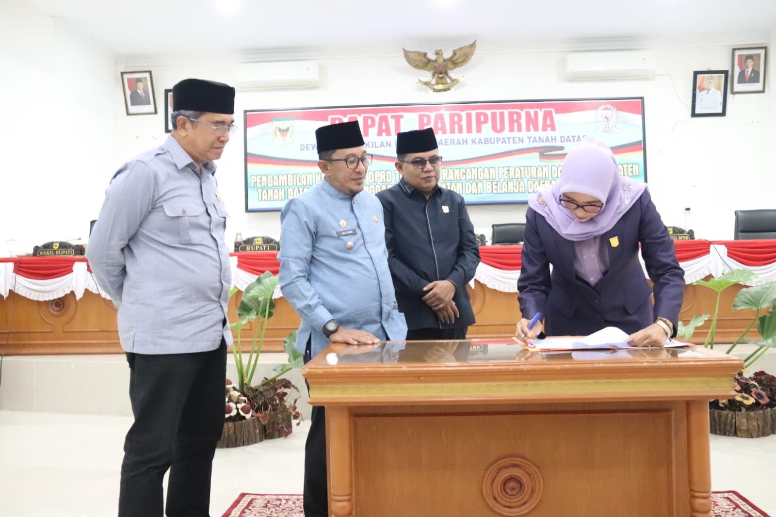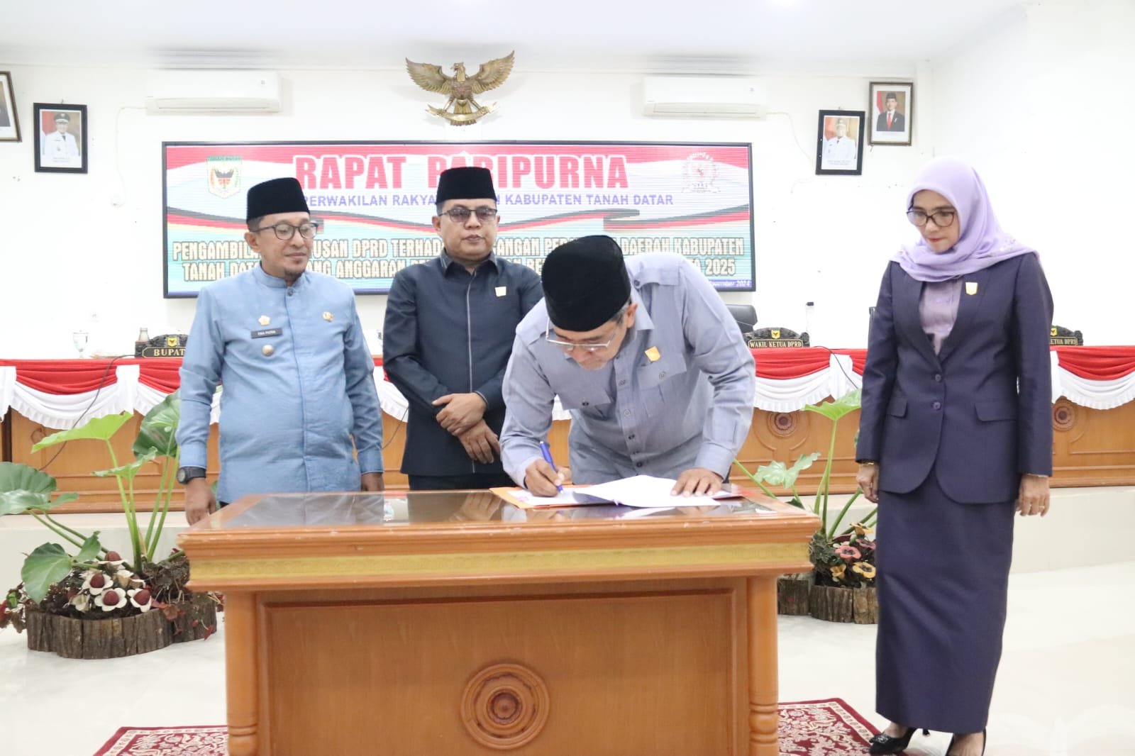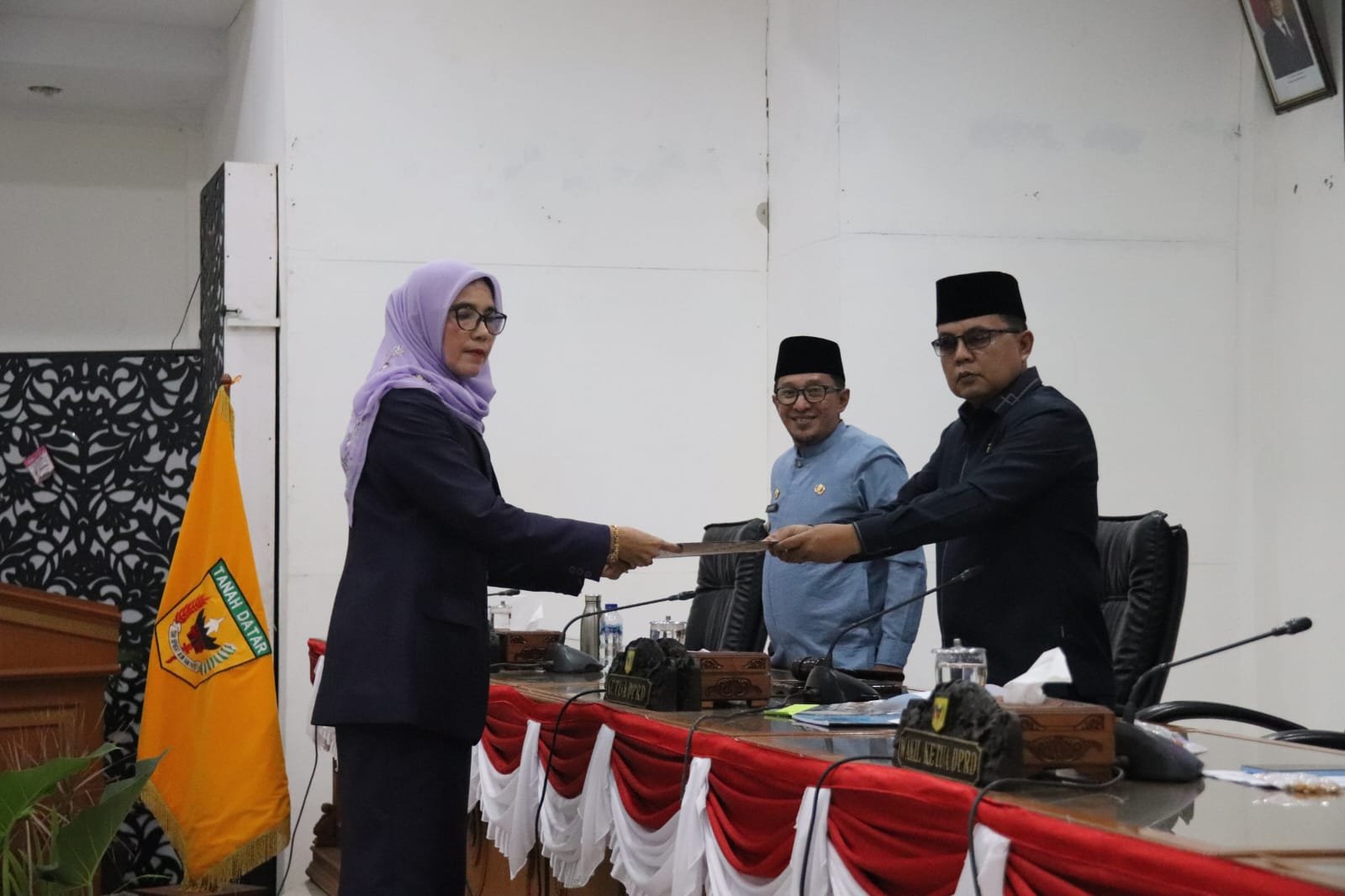 Kamrita, Wakil Ketua DPRD, Tanah Datar, sebagai Pihak kedua, dengan telah membahas dan telah menyetujui, APBD Tahun 2025, yang di ajukan oleh Pihak Pemerintah Daerah.