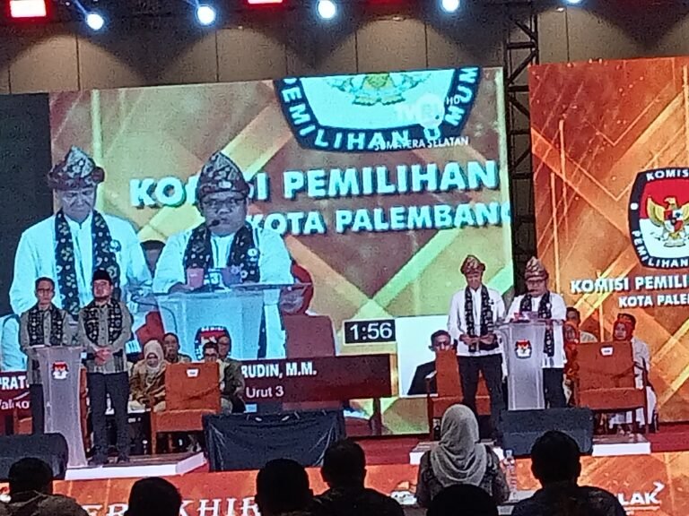 MATTANEWS. CO, PALEMBANG – Komisi Pemilihan Umum (KPU) Kota Palembang, menggelar Debat Ketiga Pilkada Kota Palembang di Hotel Novotel, Rabu (20/11/2024). Debat ini merupakan debat terakhir yang dilakukan oleh Calon walikota dan Wakil Walikota Palembang