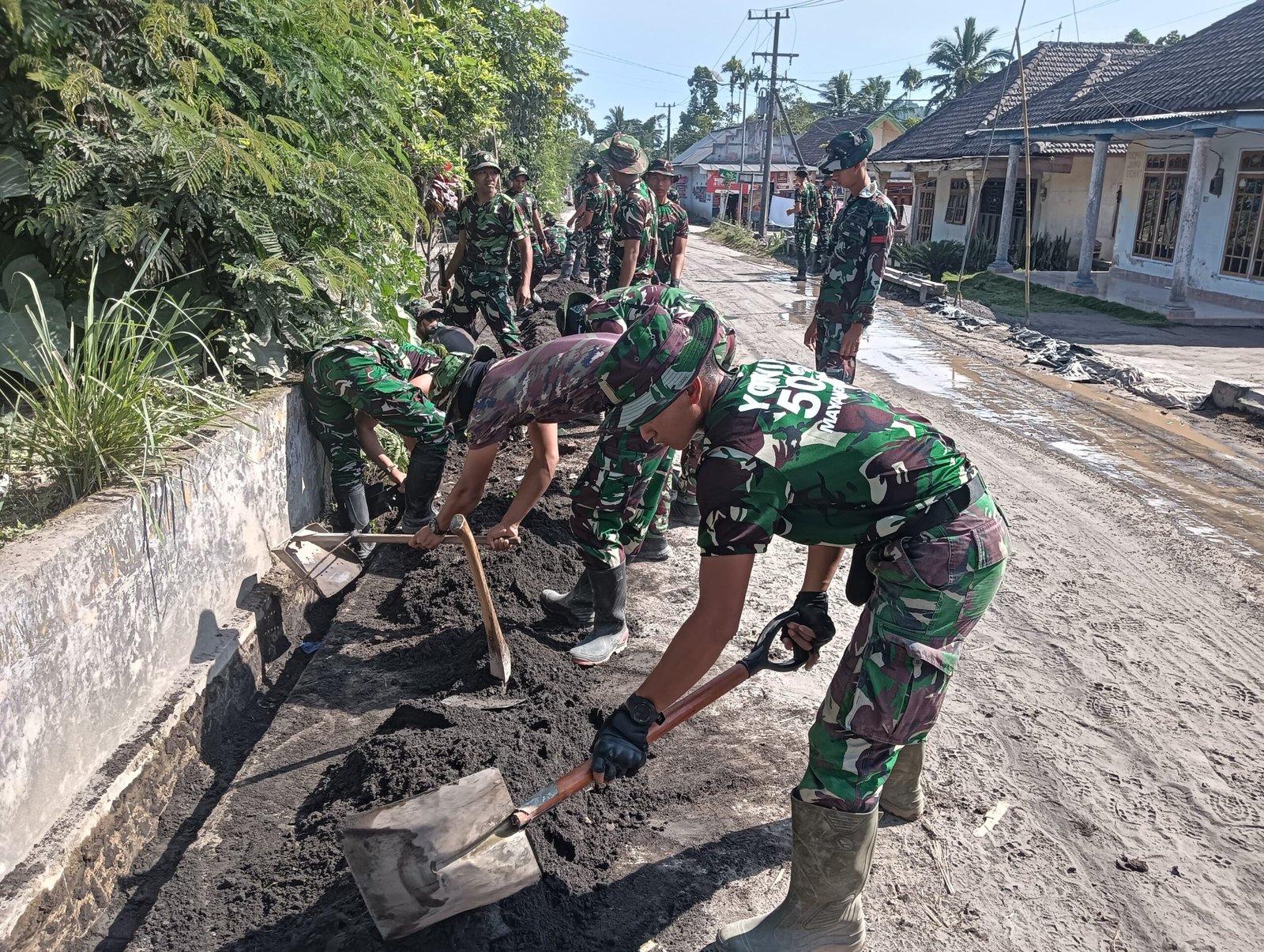 “Perbaikan saluran drainase sangat penting pasca erupsi Semeru. Dengan drainase yang lancar, air hujan maupun sisa material vulkanik bisa segera terbuang sehingga warga lebih aman dari banjir dan genangan.” papar Lettu Czi Niko