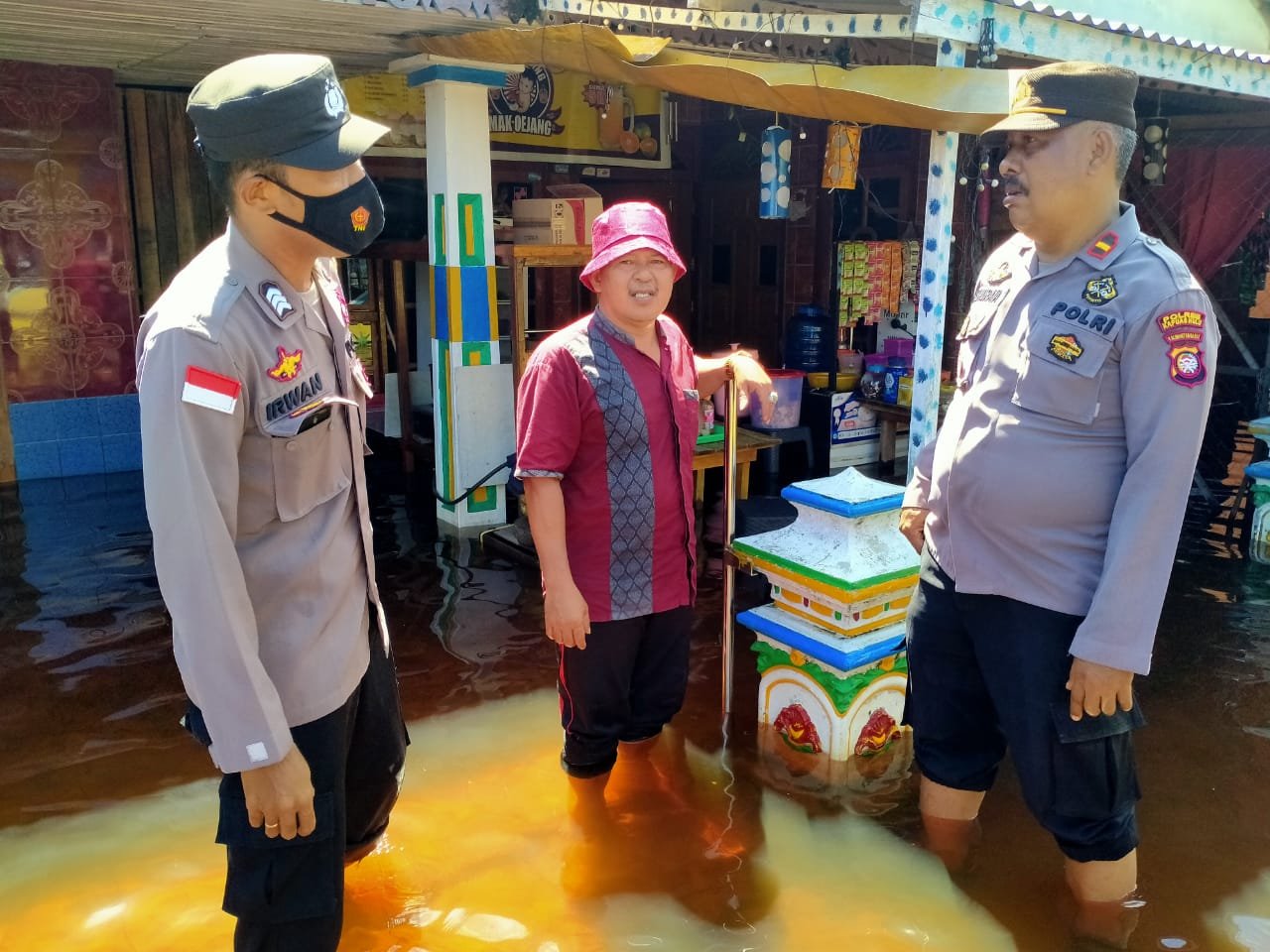 Patroli Sejumlah Titik Banjir di Kecamatan Suhaid Kapuas Hulu, Polisi : Beberapa Rumah Warga Sudah Terendam Banjir