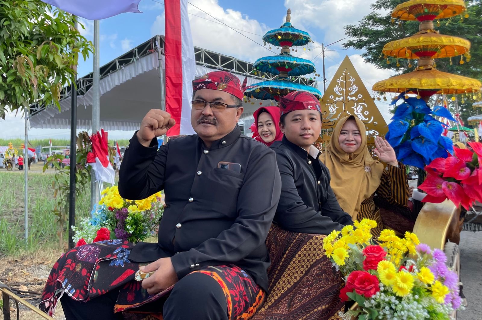 “Tema pawai karnaval dalam rangka PHBN HUT Kemerdekaan RI ke-79 yakni Bhinneka Tunggal Ika, Perjuangan, sekaligus menampilkan potensi Desa Plosokandang. Saya kenakan baju adat ala Suroboyoan maka tadi saat di atas kereta kencana banyak yang sebut Cak Jendral,” terangnya.
