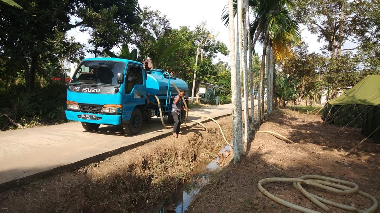 Kedatangan Duk air bersih dari PDAM Tirta Musi diperuntukkan untuk Satgas TMMD mencuci mandi dengan menggunakan air bersih.