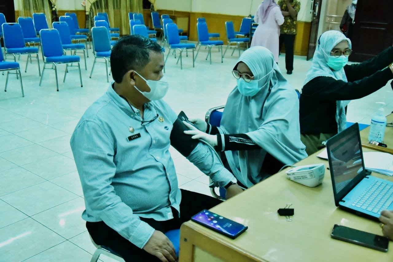 “Adapun tahapan vaksinasi Covid-19 di Lingkungan Setdakab diawali dengan pendaftaran peserta vaksin dilanjutkan dengan pemeriksaan kesehatan (screening) oleh Nakes dan penyuntikan vaksin kepada peserta,” papar Humas Setdakab.
