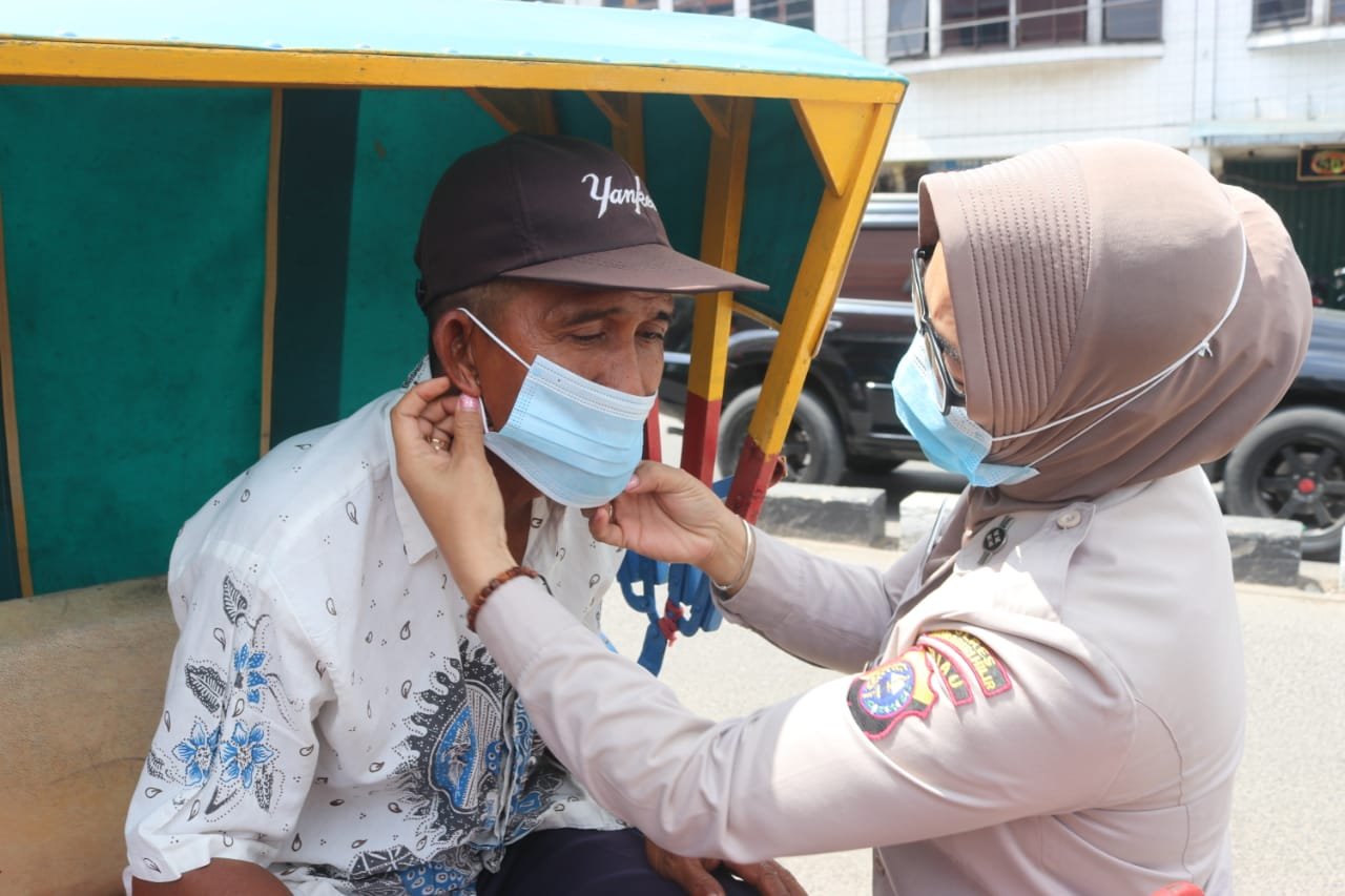 MATTANEWS.CO, INHIL – Jajaran Polres Inhil melakukan pembagian masker untuk warga masyarakat khususnya warga Tembilahan Kabupaten Inhil, Senin siang (1/2/2021)