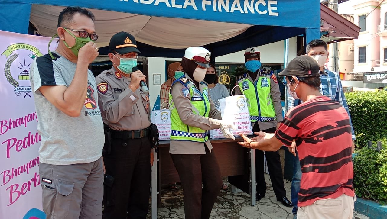 Peduli Sesama, Bhayangkari Lampung Utara Bagikan Paket Sembako ke Masyarakat