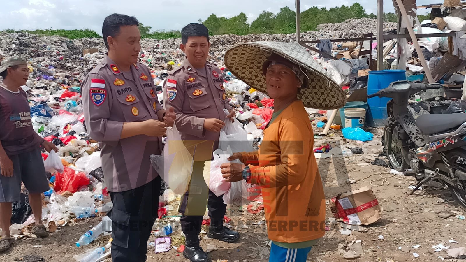 Kasat Binmas Polres Kapuas Hulu IPTU Cahya Purnawan beserta anggotanya menyambangi pemulung di Tempat Pembuangan Akhir (TPA) sampah di Desa Sibau Hulu Kecamatan Putussibau Utara