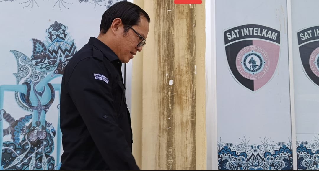 Pukul 14.18 WIB, seorang pria berpakaian kemeja panjang hitam dengan emblem KPU dengan celana putih dan berkacamata, terlihat memasuki gedung Satreskrim dengan membawa sebundel kertas putih dan kantong kresek hitam.