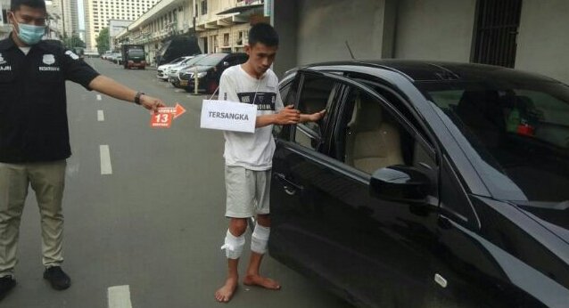 Pelaku, Irham (23), ditangkap pada Jumat, (1/5/2020) dikawasan Taman Mini Jakarta Timur saat menjual salah satu bagian kendaraan, Velg dan Ban Mobil Honda Brio milik korban.